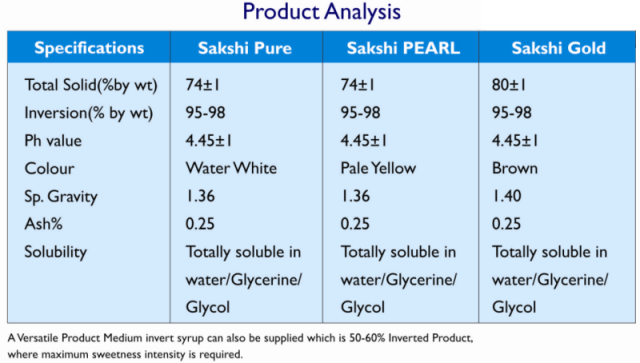 A higher solids invert syrup being used where minium water is required to be added to the products and the maximum preservation effect of the invert sugar is to be achieved. It is being widely used in the Industries like: